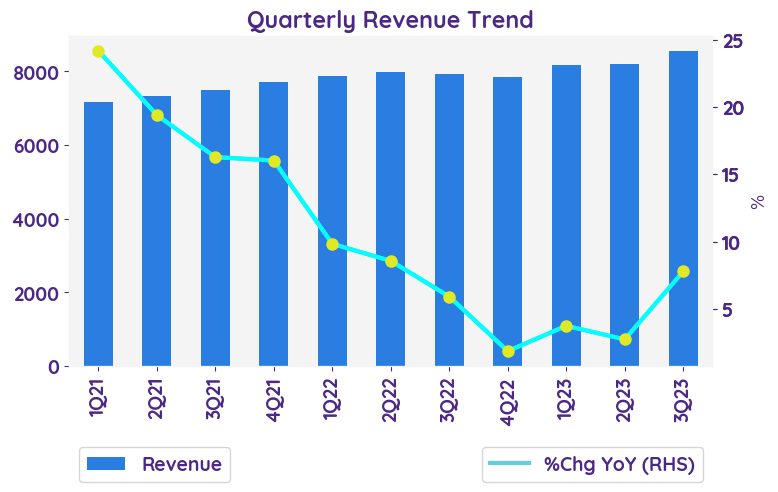 | Revenue - %Chg YoY | 3Q22 | 4Q22 | 1Q23 | 2Q23 | 3Q23 |