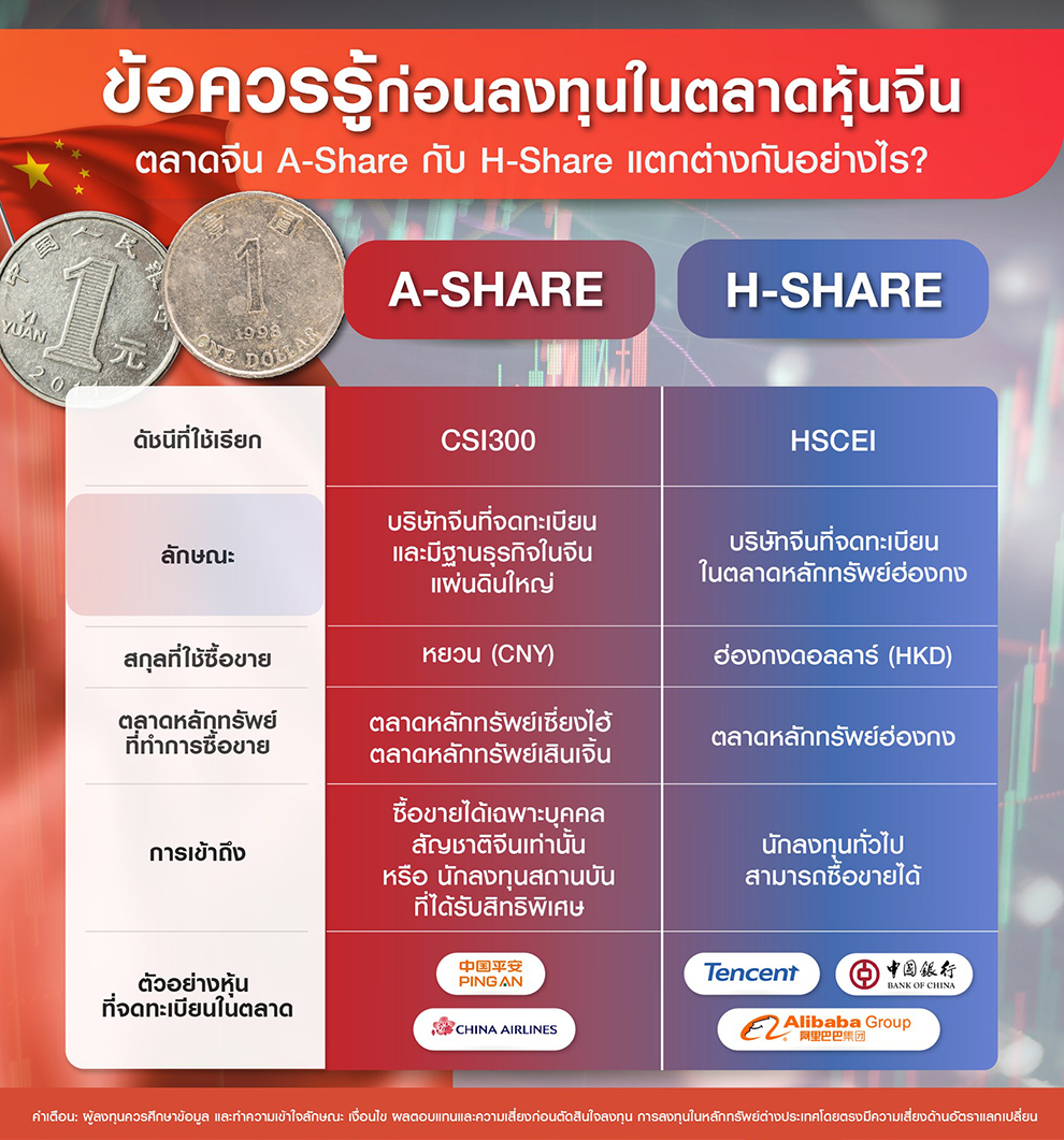 ตัวอย่างหุ้น ได้แก่ Ping An Insurance, China Airline