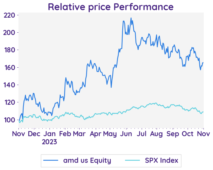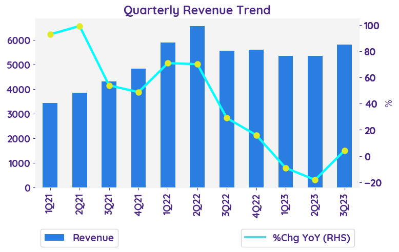 01 November 2023 Advanced Micro Devices, Inc.,| Revenue - %Chg YoY | 1Q23 | 2Q23 | 3Q23 | 4Q23E | 1Q24E |