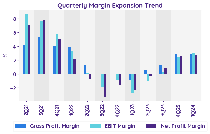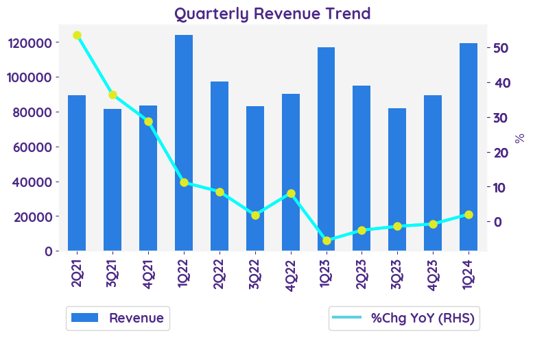 | Revenue - %Chg YoY | 2Q23 | 3Q23 | 4Q23 | 1Q24 | 2Q24E |