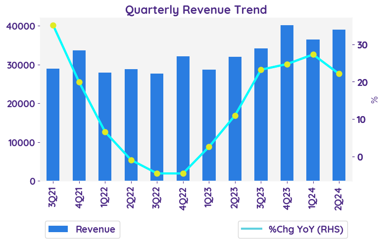 01 August 2024 Meta Platforms, Inc META| Revenue - %Chg YoY | 2Q23 | 3Q23 | 4Q23 | 1Q24 | 2Q24 |