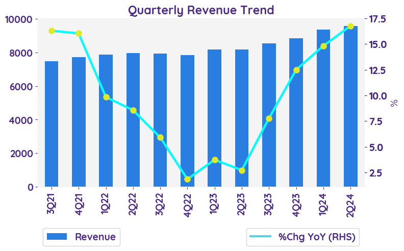 • นอกจากนี้ปรับเพิ่มประมาณการใน 3Q24 ขึ้น โดยปรับกำไรขึ้นสู่ $5.1 ต่อหุ้น จากครั้งก่อนที่ $4.7 ขณะที่รายได้ปรับขึ้นอยู่ที่ $9.63 พันล้าน ซึ่งต่ำกว่าคาดและโตชะลอตัวลง 13.9% YoY