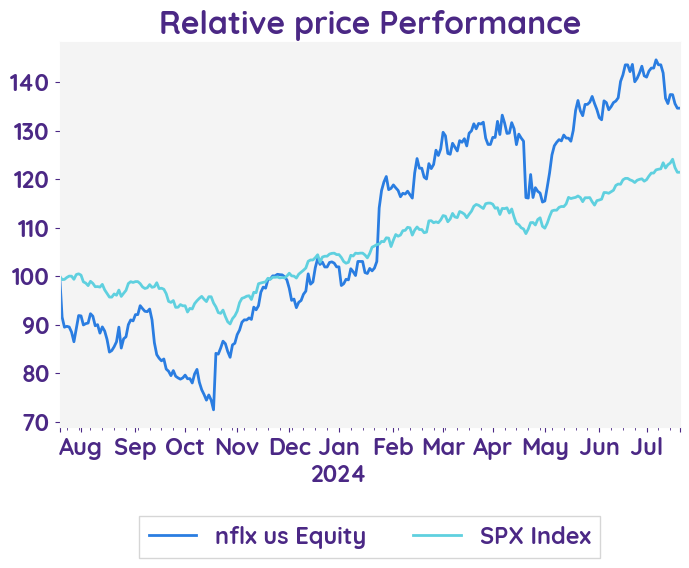 19 July 2024  Netflix, Inc NFLX| Net Streaming Subscriber Additions - %Chg YoY | 1Q23 | 2Q23 | 3Q23 | 4Q23 | 1Q24 |