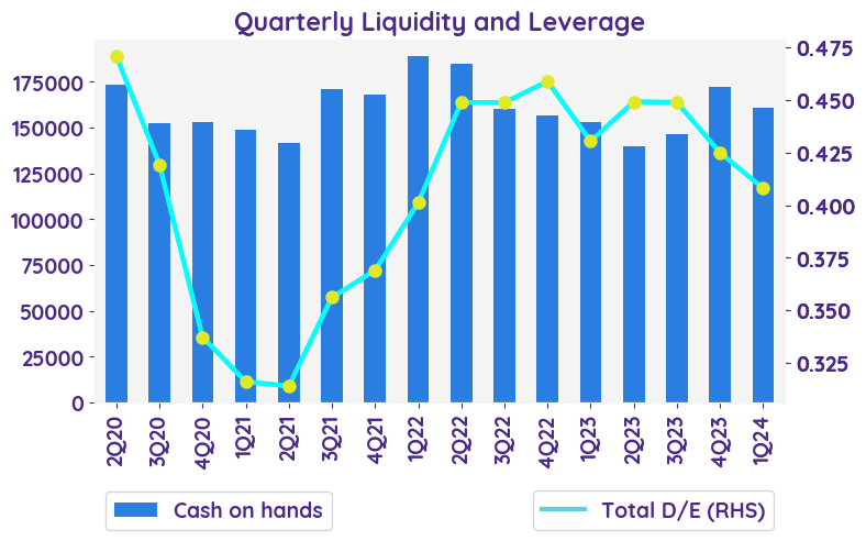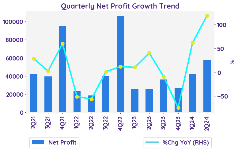• รายได้รวมเพิ่มขึ้น 8% YoY ถึง 161.1 พันล้านหยวน ดีกว่าที่คาด, และกำไรขั้นต้นมีการเพิ่มขึ้นที่สำคัญ 21% เมื่อเทียบกับปีก่อน. กำไรจากการดำเนินงานก็มีการเติบโต, เพิ่มขึ้น 27% YoY, ถึง 58.4 พันล้านหยวน. กำไรสุทธิเติบโตอย่างมาก, 51% YoY ดีกว่าคาด ในภาพรวม, ผลการดำเนินงานและผลประกอบการของบริษัทแสดงให้เห็นถึงความเคลื่อนไหวที่ดีและมีความสำเร็จอย่างต่อเนื่อง