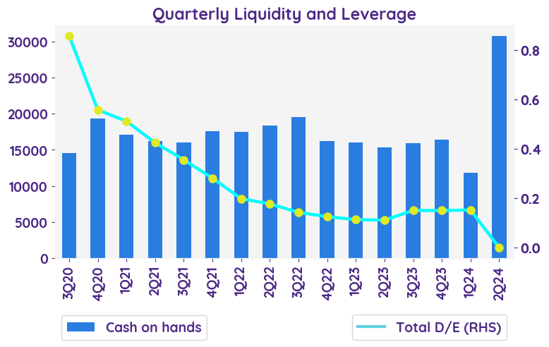 • Tesla เผยงบ 2Q24 กำไรผิดคาดและหดตัวผลจากการปรับลดราคาขาย EV รวมถึงยังปรับลดราคาขายส่งผลให้อัตรากำไรขั้นต้น EV อย่างไรก็ดีผลกำไรจากธุรกิจอื่น ๆ โดยเฉพาะธุรกิจพลังงานและรายได้จากเครดิตด้านกฎระเบียบสูงขึ้น