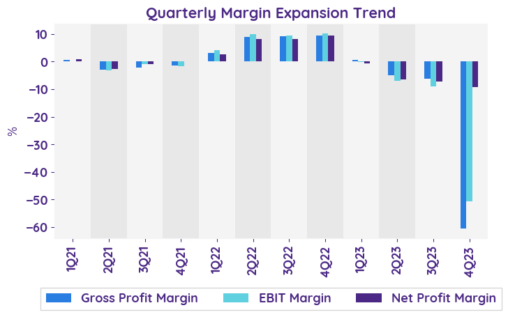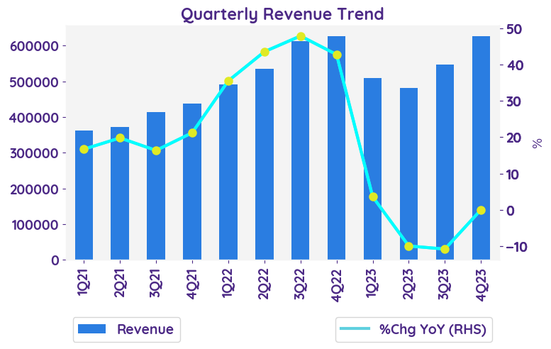 | Revenue - %Chg YoY | 1Q23 | 2Q23 | 3Q23 | 4Q23 | 1Q24E |