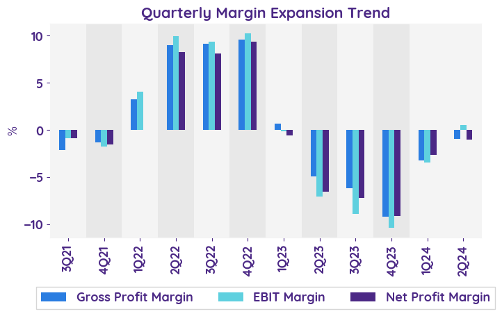 | Revenue - %Chg YoY | 4Q23 | 1Q24 | 2Q24 | 3Q24E | 4Q24E |