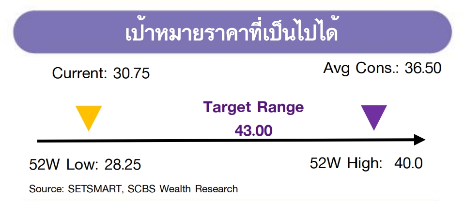 | ข้อสงวนสิทธิ์: ข้อมูลในรายงานนี้เป็นข้อมูลที่มีการเปิดเผยต่อสาธารณะ ซึ่งนักลงทุนสามารถเข้าถึงได้โดยทั่วไป และเป็นข้อมูลที่เชื่อว่าน่าจะเชื่อถือได้ แต่ทั้งนี้ บริษัทหลักทรัพย์ ไทยพาณิชย์ จำกัด (“บริษัท”) มิได้ยืนยันหรือรับรองถึงความถูกต้อง หรือสมบูรณ์ของข้อมูลดังกล่าวแต่อย่างใด ความคิดเห็นที่ปรากฏอยู่ในรายงานนี้เป็นเพียงการนำเสนอในมุมมองของบริษัท และเป็นความคิดเห็น ณ วันที่ที่ปรากฏในรายงานเท่านั้น ซึ่งอาจเปลี่ยนแปลงได้ภายหลังวันดังกล่าว โดยบริษัทไม่จำเป็นต้องแจ้งให้สาธารณชน หรือนักลงทุนทราบ รายงานนี้จัดทำขึ้นเพื่อเผยแพร่ข้อมูลให้แก่นักลงทุนเท่านั้น บริษัทไม่รับผิดชอบต่อการนำข้อมูลหรือความคิดเห็นใดๆ ไปใช้ในทุกกรณี ดังนั้นนักลงทุนจึงควรใช้ดุลพินิจในการพิจารณาตัดสินใจก่อนการลงทุน นอกจากนี้ บริษัท และ/หรือ บริษัทในเครือของบริษัทอาจมีส่วนเกี่ยวข้องหรือผลประโยชน์ใดๆ กับบริษัทใดๆ ที่ถูกกล่าวถึงในรายงานนี้ก็ได้ บริษัทหลักทรัพย์ ไทยพาณิชย์ จำกัด (SCBS) เป็นบริษัทย่อยที่ธนาคารไทยพาณิชย์ จำกัด (มหาชน) (SCB) ถือหุ้นทั้งหมด ข้อมูลใดๆ ที่เกี่ยวข้องกับ SCB มีวัตถุประสงค์เพื่อใช้ในการเปรียบเทียบเท่านั้น เอกสารฉบับนี้จัดทำโดย บริษัทหลักทรัพย์ไทยพาณิชย์ จำกัด (“SCBS”) ซึ่งมีธนาคารไทยพาณิชย์ จำกัด (มหาชน) (“ธนาคารฯ”) เป็นผู้ถือหุ้นรายใหญ่แต่เพียงผู้เดียว โดยธนาคารฯ เป็นที่ปรึกษาทางการเงินสำหรับธุรกรรมใด ๆ ของบริษัท เอสซีจี เคมิคอลส์ จำกัด (มหาชน) ความเห็น ข่าว บทวิจัย บทวิเคราะห์ ราคา ข้อความ การคาดการณ์ การประเมิน และ/หรือ ข้อมูลอื่นที่ระบุในเอกสารฉบับนี้ (“ข้อมูล”) มีวัตถุประสงค์เพื่อใช้เป็นข้อมูลทั่วไปเท่านั้น และไม่อาจตีความได้ว่าเป็นการให้คำแนะนำแก่บุคคลใดๆ หรือเป็นการเสนอซื้อ หรือเสนอขาย หรือชักชวนให้เสนอซื้อหรือเสนอขายหลักทรัพย์ โดย SCBS และ/หรือกรรมการ พนักงาน และลูกจ้างของ SCBS ย่อมไม่ต้องรับผิดต่อความเสียหายใดๆ ทั้งความเสียหายทางตรง ความเสียหายทางอ้อม ความเสียหายจากการผิดสัญญา หรือความเสียหายอันสืบเนื่อง อันเป็นผลมาจากการใช้หรือการเชื่อถือต่อการใช้ข้อมูล ทั้งนี้ รวมถึงแต่ไม่จำกัดเพียงการสูญเสียผลกำไร นักลงทุนพึงใช้ข้อมูลในเอกสารฉบับนี้ประกอบข้อมูลและความเห็นอื่นๆ รวมถึงวิจารณญาณของตนในการตัดสินใจลงทุน ข้อมูลในเอกสารฉบับนี้จัดทำขึ้นจากแหล่งข้อมูลที่ SCBS เห็นว่าน่าเชื่อถือ โดย SCBS ไม่รับรองถึงความถูกต้อง สมบูรณ์ และ/หรือ ครบถ้วนของข้อมูลดังกล่าว เอกสารฉบับนี้จัดทำโดย บริษัทห